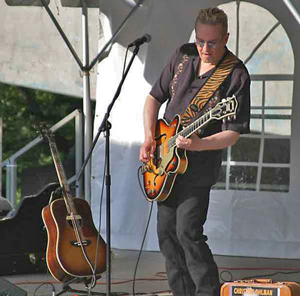 Known as "The Buddah Of The Bass" for his unflappable Zen-trance stage presence, Colbath goes to the well of Duck Dunn, James Jamierson, and John Paul Jones for inspiration. He says, "Playing with Christine allows me to work on music in an original context, which is very gratifyng to me as a musician." Michael brings many influences to his playing style and bass lines and a spark that few can match when he straps on his axe.